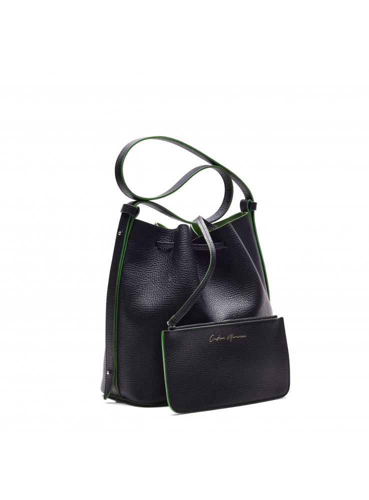 Sandra è una comoda bucket bag realizzata in pelle di vitello liscio con interni in microsuede. Le dimensione e la forma morbida ne fanno una scelta essenziale e raffinata. E’ dotata di chiusura a coulisse, pochette interna e tracolla.