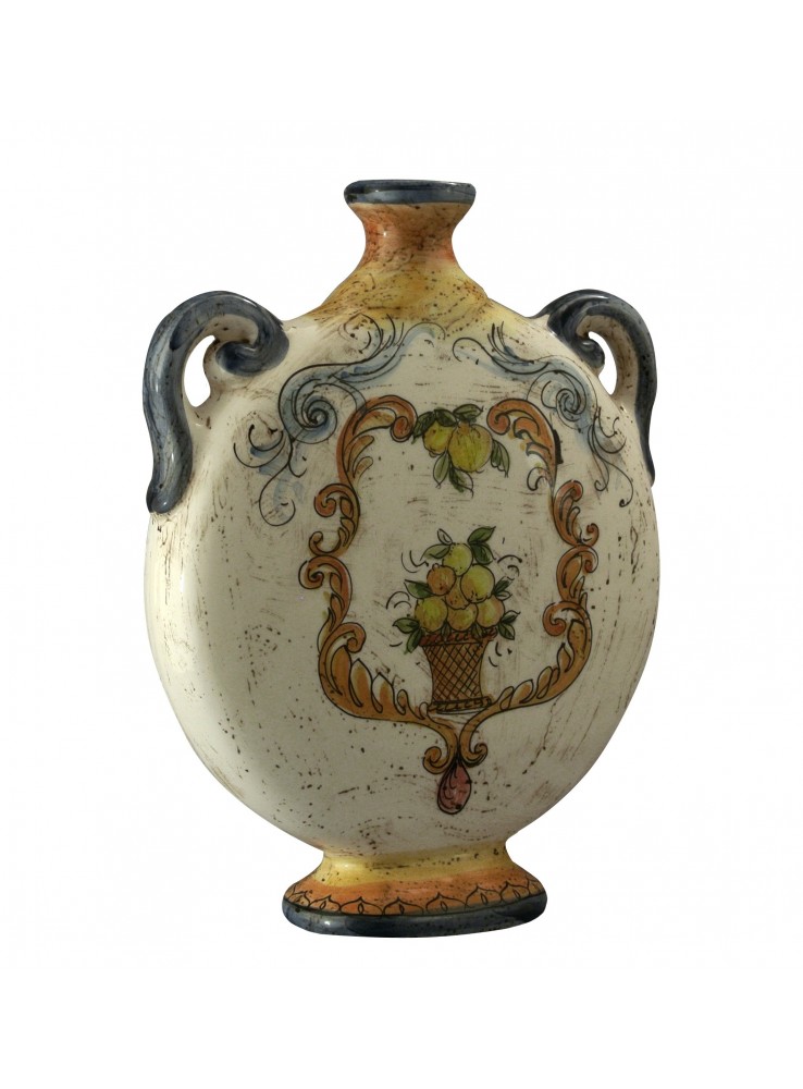 • Bottiglia piatta piccola in ceramica cotta e decorata a mano