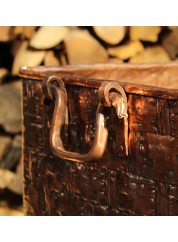 Cesta porta legna in rame, cesellata e sbalzata a mano, seguendo antiche arti di lavorazione del rame. Questo oggetto, unico nel suo genere, e’ realizzato totalmente a mano esclusivamente da noi. Ricordando una cesta, è ottima per depositare la nostra legna del camino o della stufa senza dover usare oggetti poco consoni all’arredamento. Essendo totalmente in rame è anche molto resistente e perfetta per questo utilizzo. I due splendidi maniglioni in rame, anche loro fatti a mano, forniscono una presa comoda e sicura. Se cercate un oggetto unico made in italy, può sicuramente soddisfare la tua ricerca.