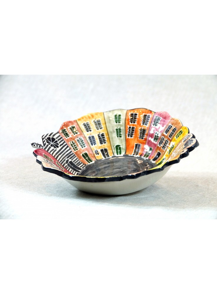Ciotola da portata in tre dimensioni in ceramica realizzata e dipinta a mano