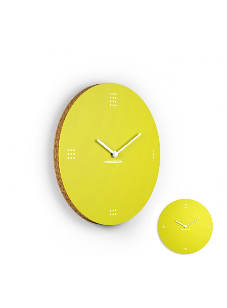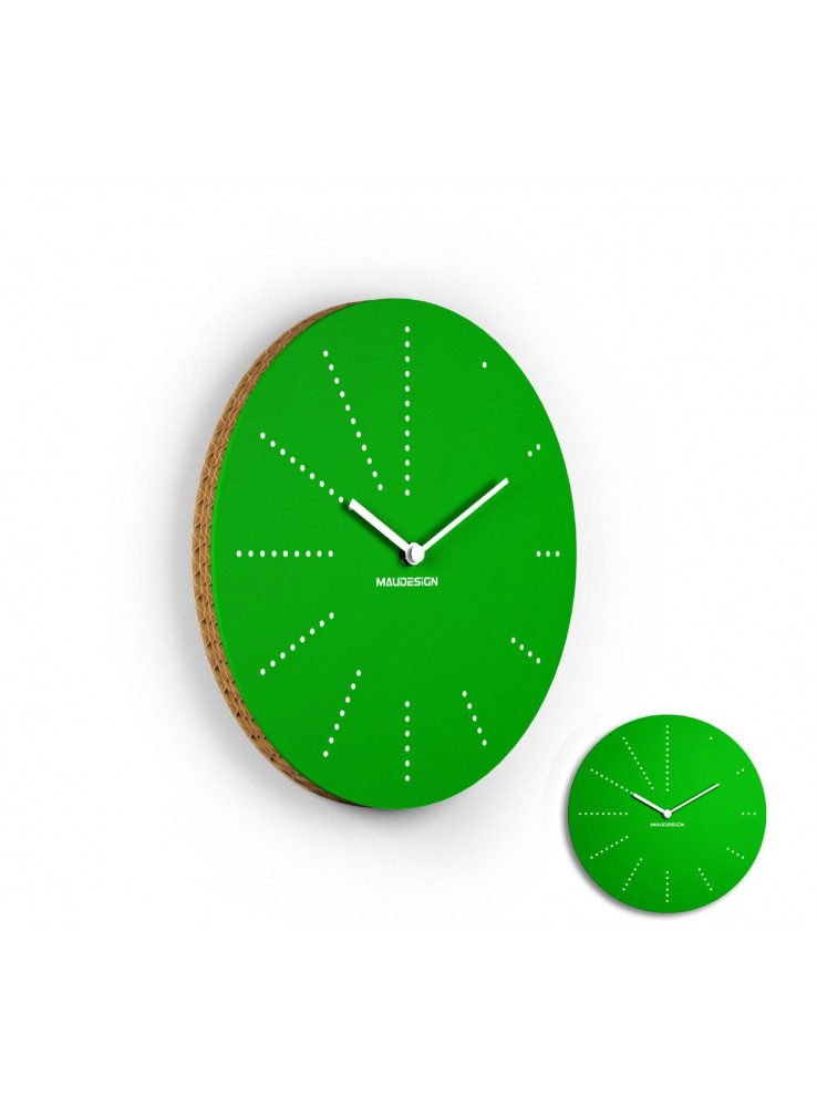 L’orologio in cartone della serie Dots dal design green, è realizzato a mano con prodotti artigianali ed è completamente Made in Italy. E’ disponibile in cartone ondulato o in cartone alveolare avana interno nero, rivestito in materiale idrorepellente e antiurto. Lancette in plastica bianche.