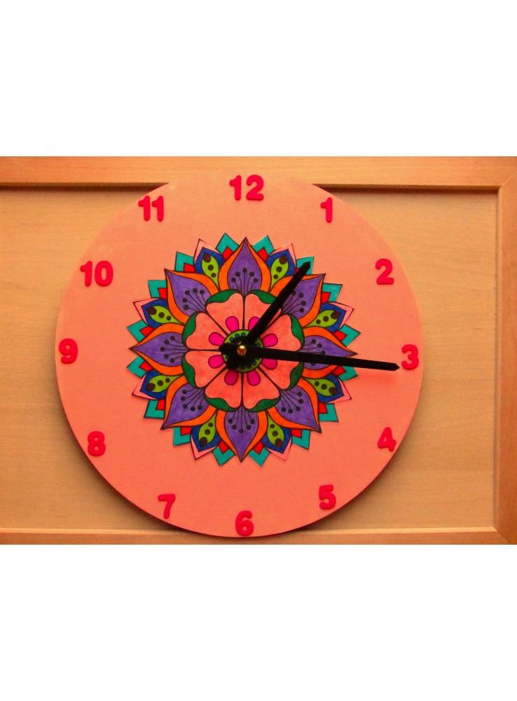 L’orologio da parete “Vaniglia” al quarzo (batteria non inclusa) incastonato in un disco di legno. Realizzato a mano con le geometrie e le simmetrie dei mandala con colori a tempera su carta e plastificati. La numerazione è espressione di creatività tipica della linea “florinda” dedicata all’arte contemporanea. L’oggetto, unico ed irripetibile, grazie a dettagli e imperfezioni, ha un valore che deriva dall’amore, dal tempo, dai materiali e dalla passione che l’autore mette in ogni sua creazione.
