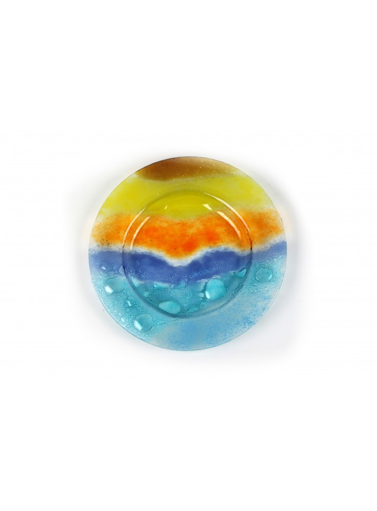 Piatto tondo realizzato a mano con la tecnica della vetrofusione e colorato con ossidi