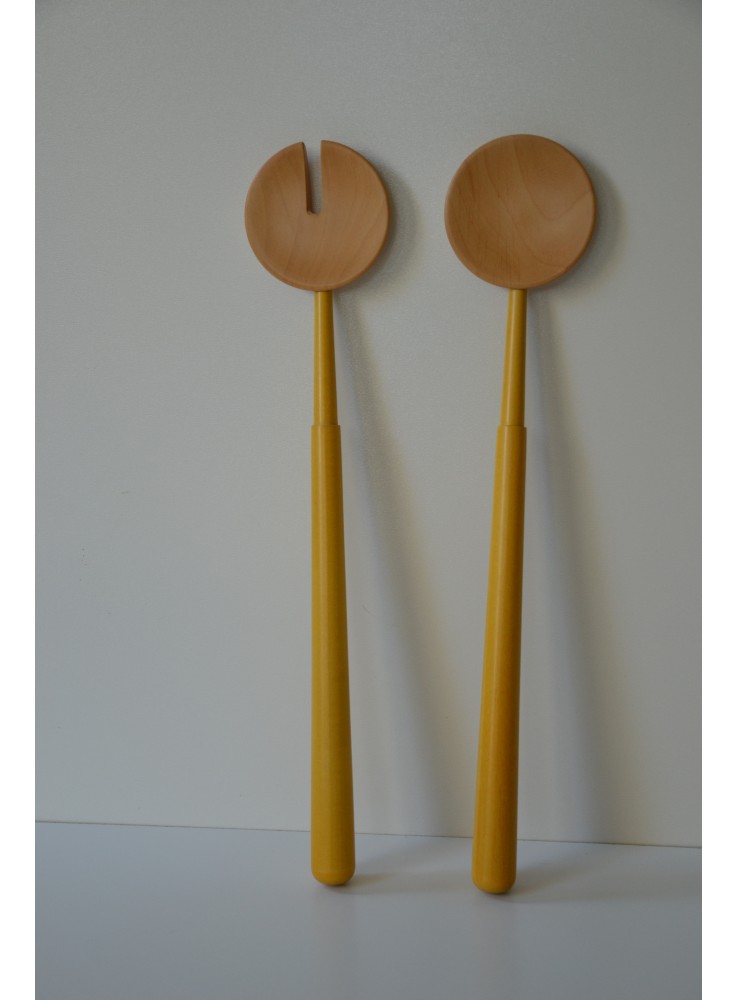 Posate per insalata in legno di Tiglio naturali con manico giallo