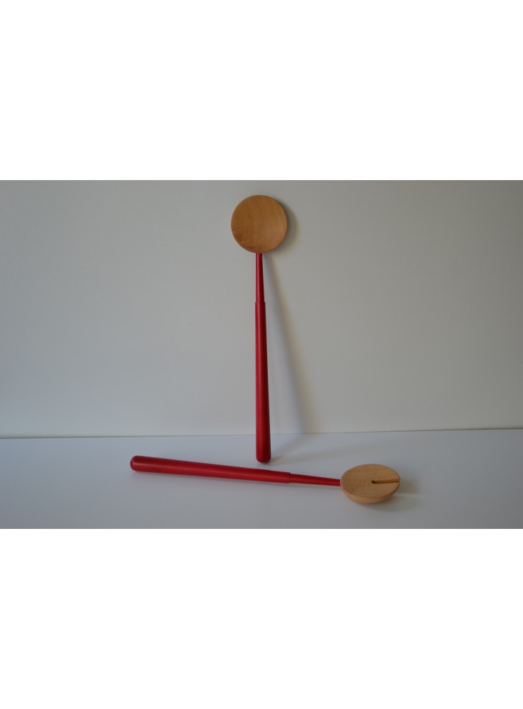 Posate per insalata in legno di Tiglio naturali con manico rosso