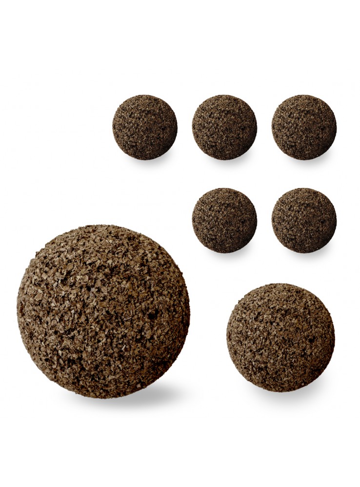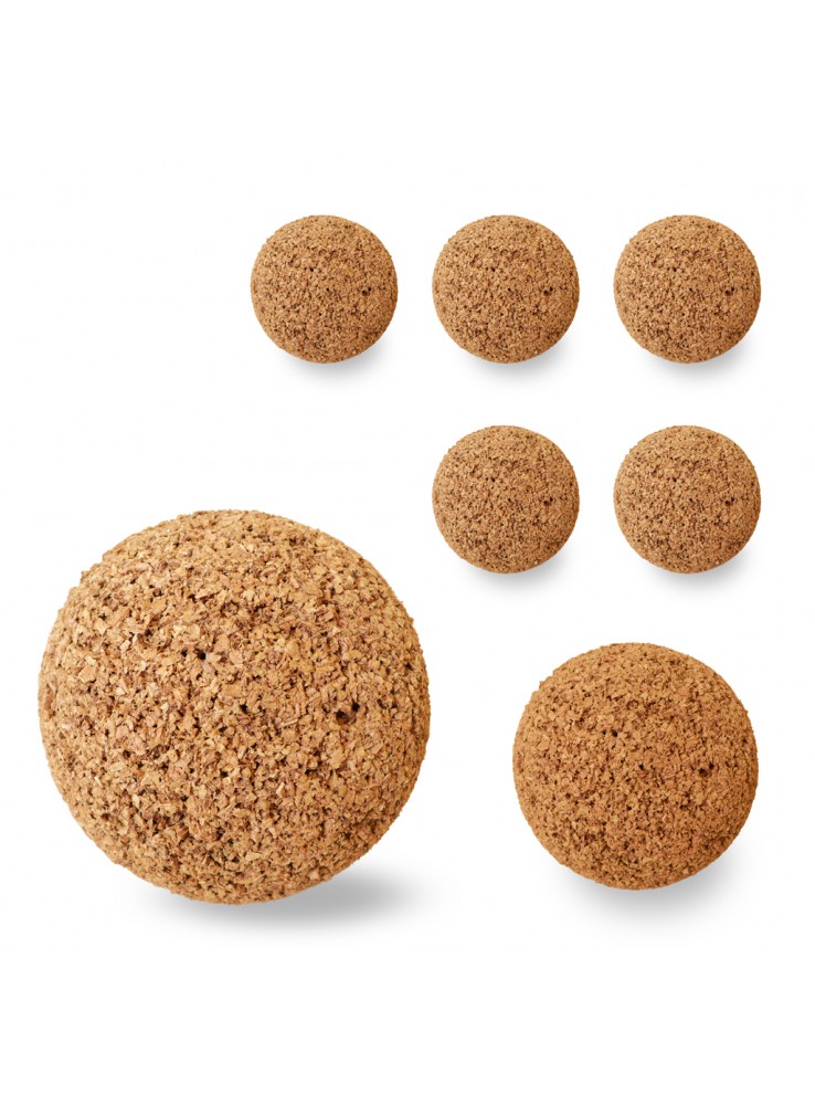 Contemporanei oggetti di design dalle molteplici applicazioni, le Spheres sono elementi decorativi della collezione Greencorks. Ideali per vetrine o per qualsiasi genere di locale, queste particolari sfere possono essere appese al soffitto, poggiate a terra o fissati alle pareti riescono sempre ad impreziosire una stanza con un diametro di 9 cm. Disponibili in sughero biondo, sughero nero e sughero sale pepe e sono già disponibili delle combinazioni anche miste delle stesse.