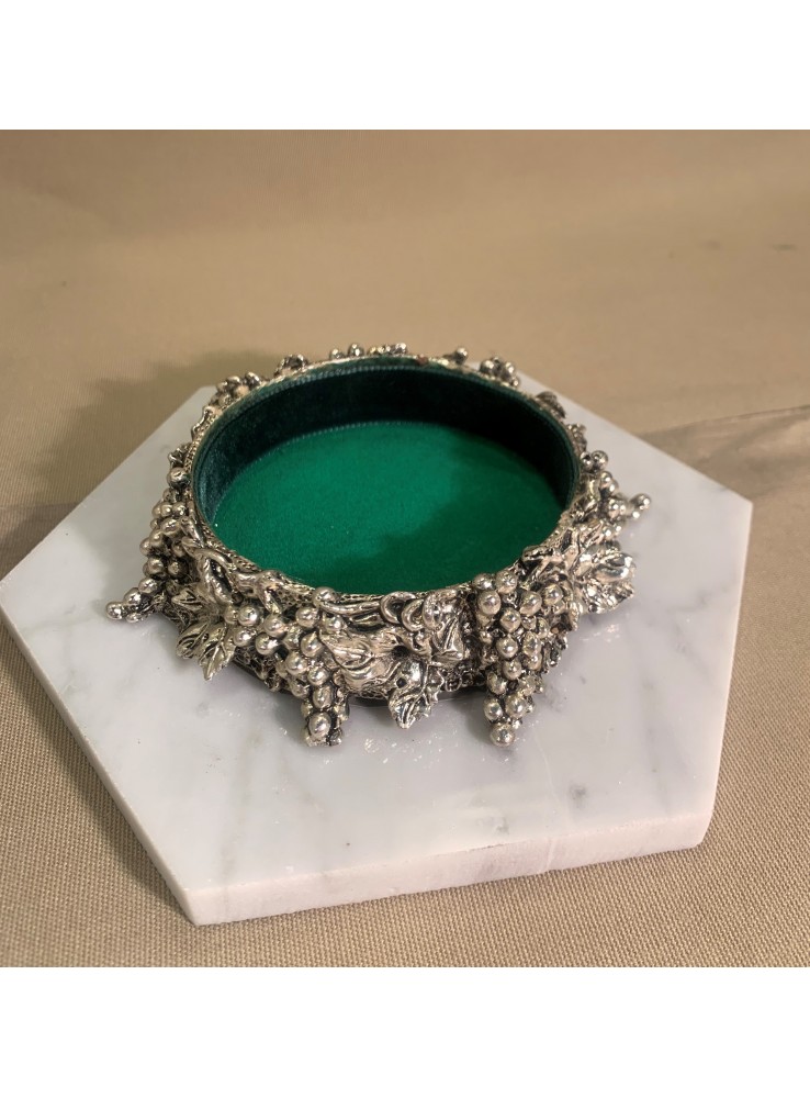 Sottobottiglia realizzato in fusione e argentato galvanicamente.