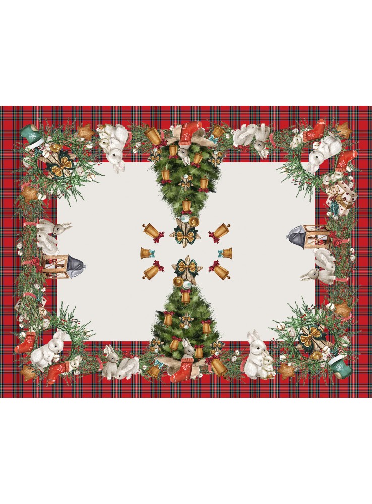 Tovaglia tema Natale in cotone panama con stampa digitale di coniglietti. Disponibile in due misure da 6 e da 12.
