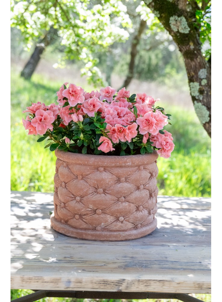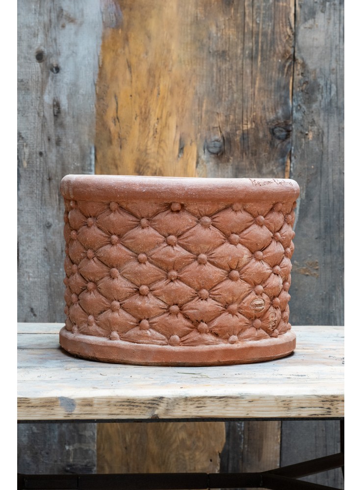 Vaso Trapuntato viene realizzato tutto completamente a mano con Terra Naturale di Impruneta. Ogni sacco è un pezzo unico frutto della fantasia dell’artigiano, e si differenzia per forma e dimensioni. Questo vaso dal carattere deciso riesce ad esaltare qualsiasi spazio della tua casa. Caratteristiche: realizzato completamente a mano con terra certificata di Impruneta, resiste nel tempo a sbalzi di temperatura fino a – 30° sottozero. Informazioni utili: Sfumature e differenze di colori rendono ogni manufatto unico ed irripetibile La terracotta di Impruneta grazie alle sue proprietà riesce a proteggere la piantada da sbalzi di temperatura e riesce a rilasciare una costante umidità che favorisce una sana crescita della pianta.