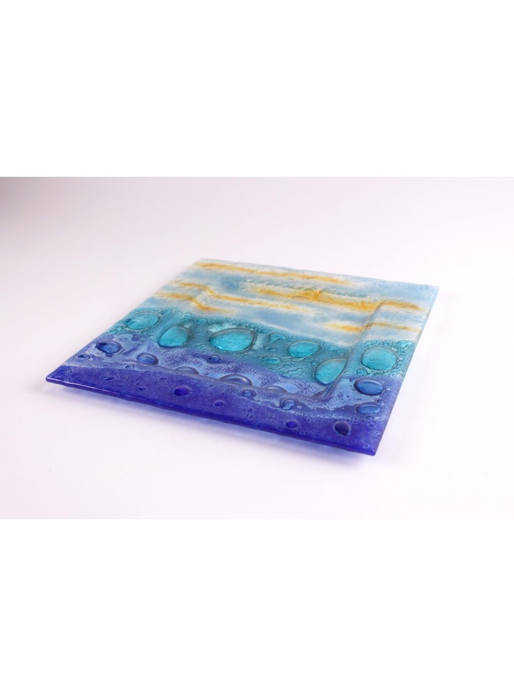 Vassoio artigianale grande di vetro quadrato realizzato in vetrofusione e colorato con ossidi.