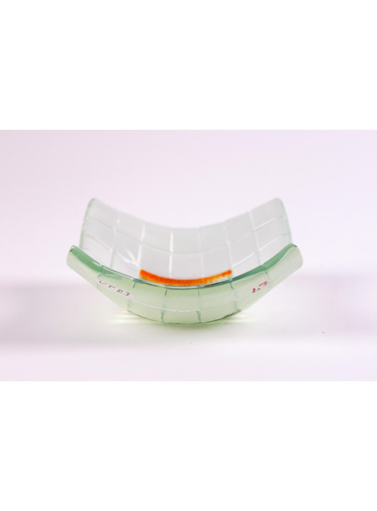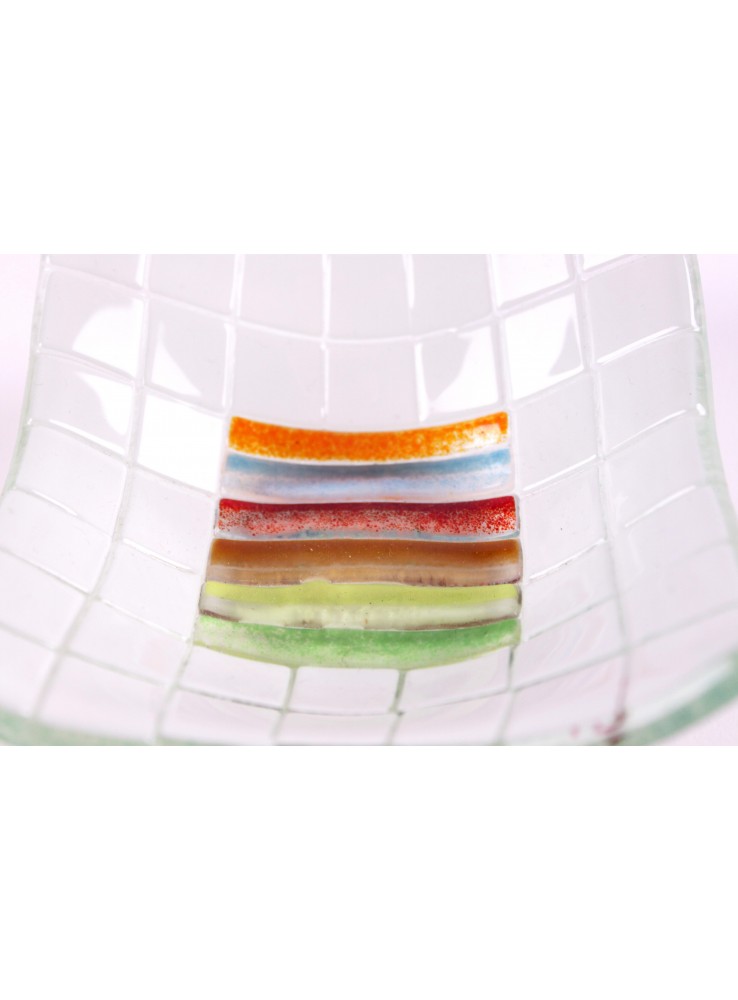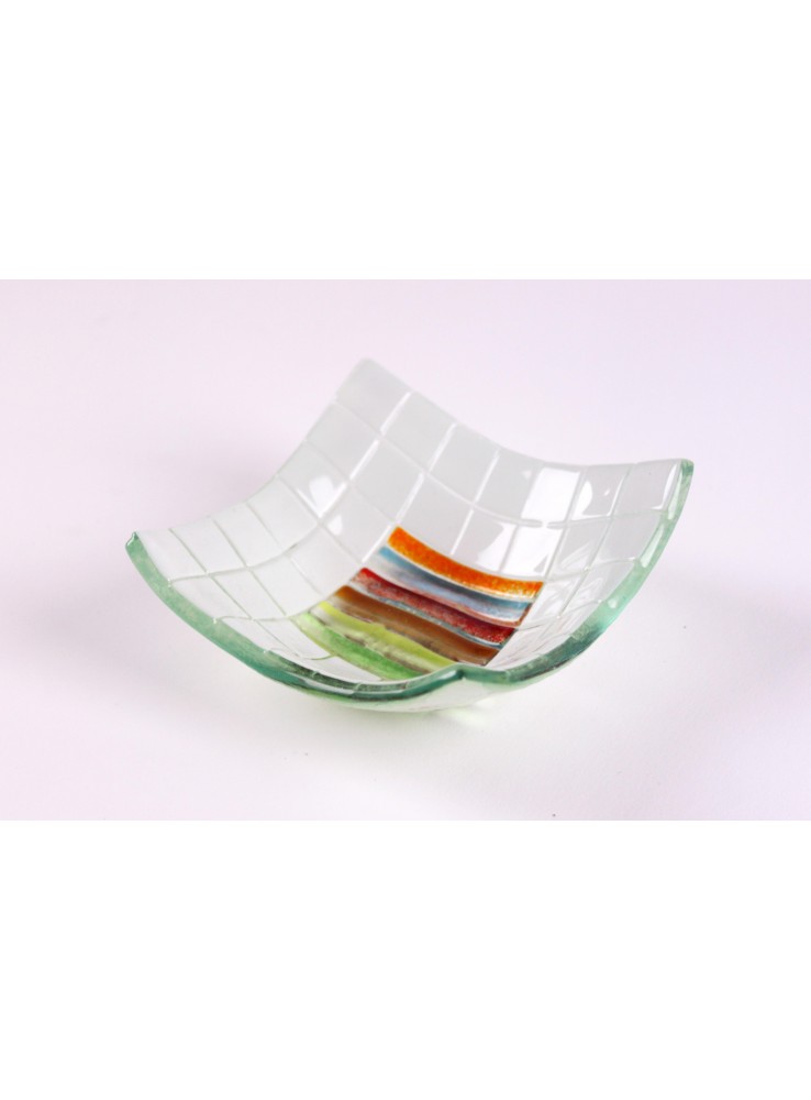 Arcobaleno: vassoio quadrato con decorazione multicolore realizzato in assemblaggio con vetri flosing.