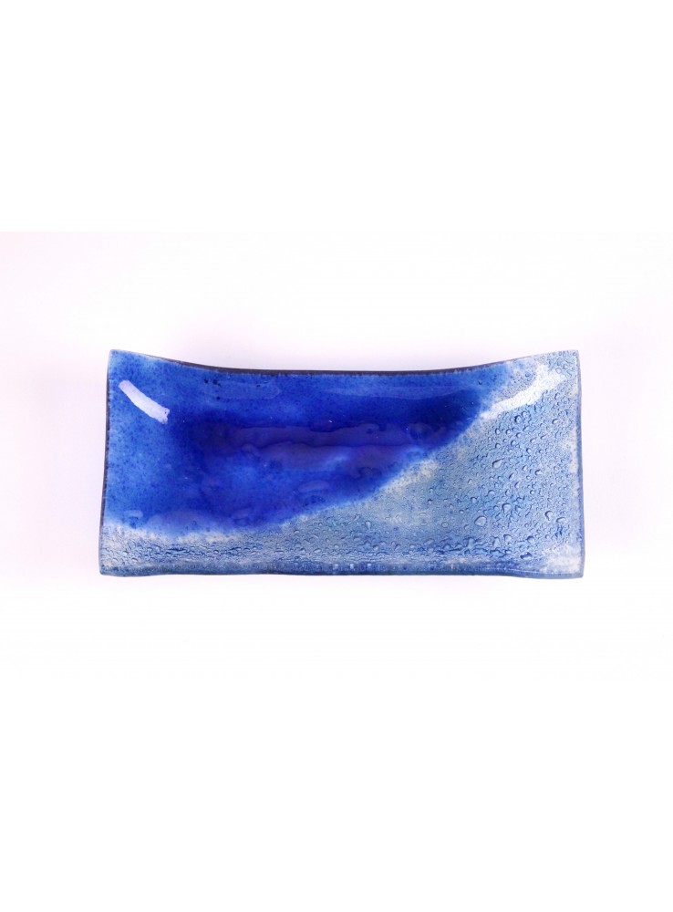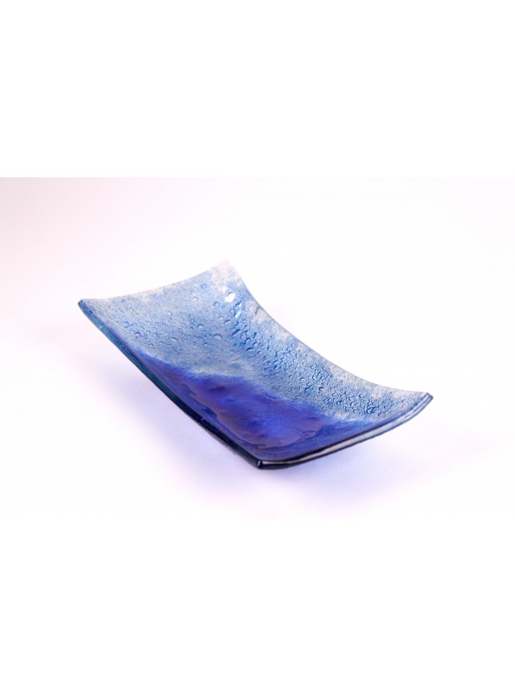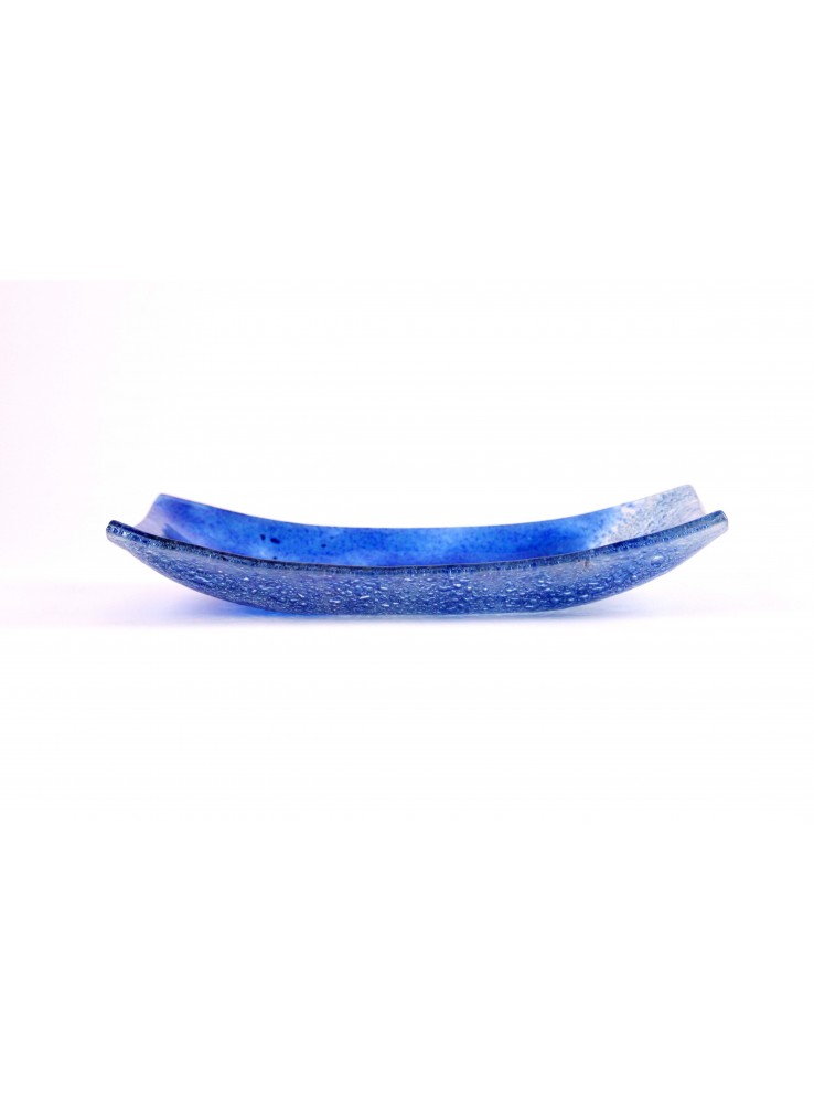 Vassoio ornamentale di vetro realizzato in vetrofusione. Disponibile nella versione Savana e Zaffiro.