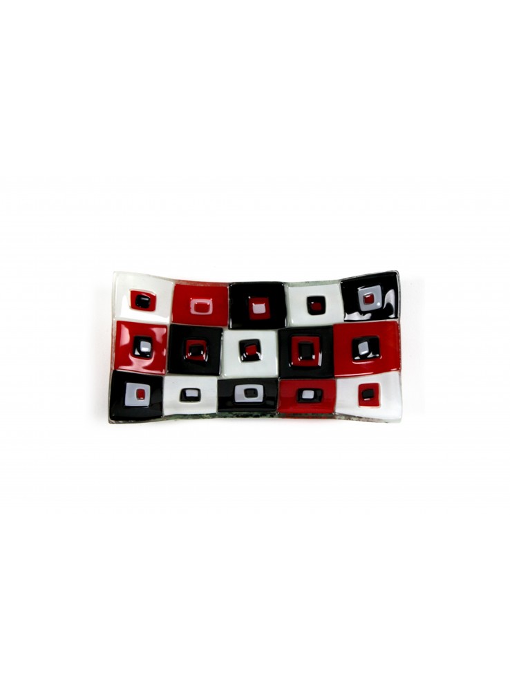 Vassoio rettangolare realizzato a mano con la tecnica della vetro fusione a mosaico